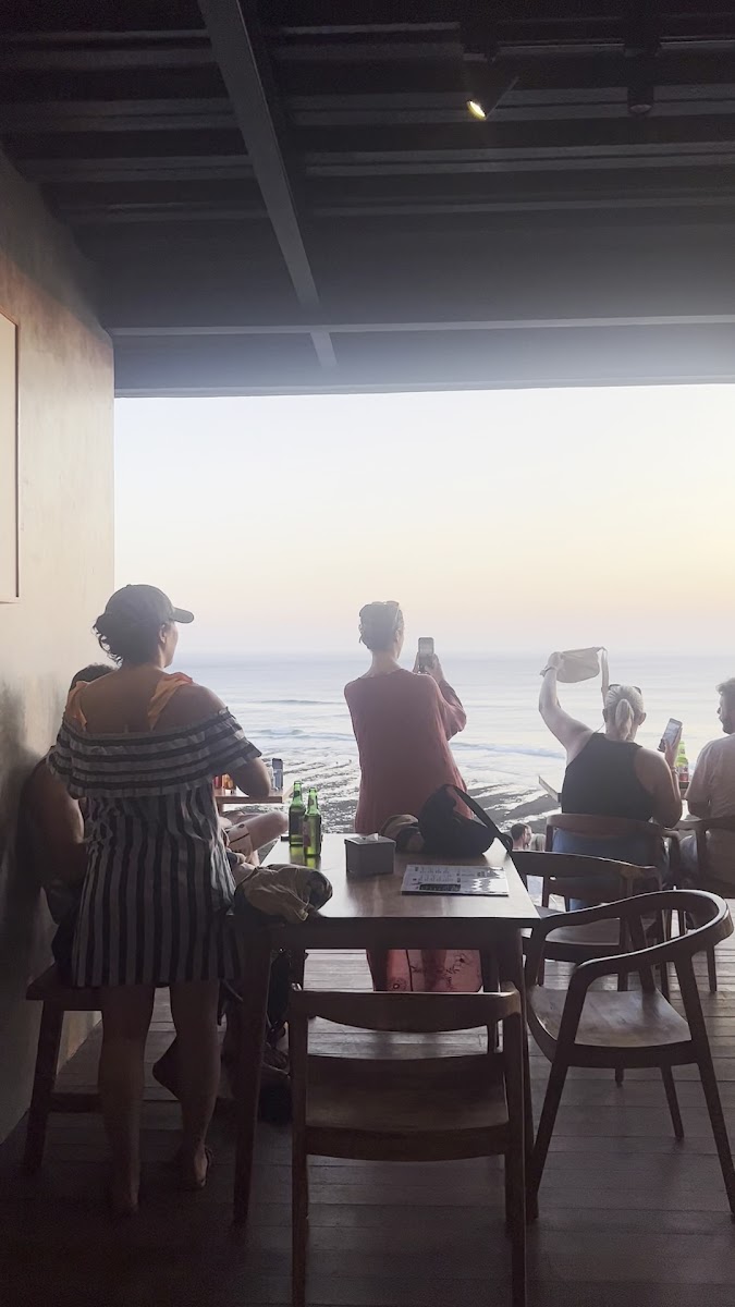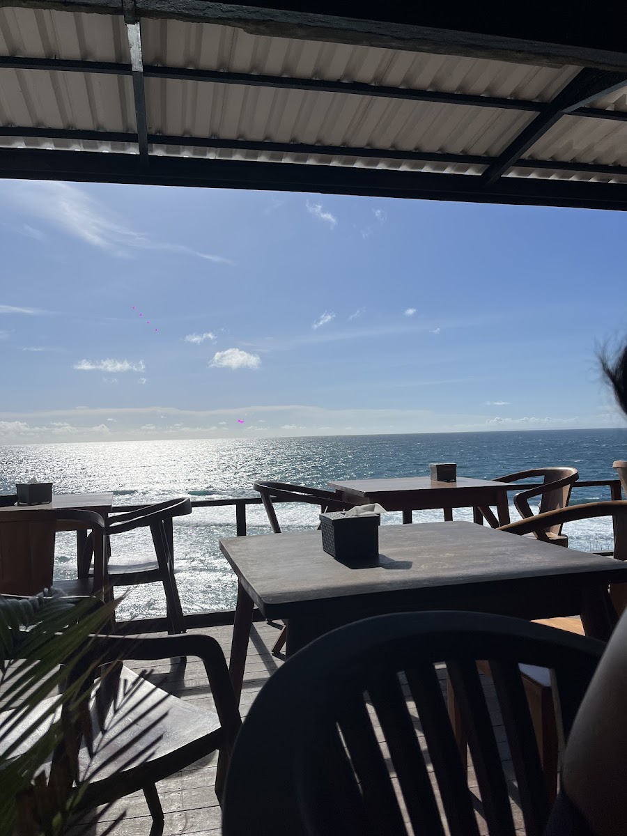The atmosphere is casual yet thoughtfully arranged, with seating both at the waterside level and an elevated viewing deck that offers expansive views of the sunset. The natural surroundings play a big part in the experience—expect the occasional challenge of navigating steep steps to reach the venue, common for this stretch of Uluwatu’s coastal cafes. Visitors often come early to snag prime spots, especially on sunny afternoons.