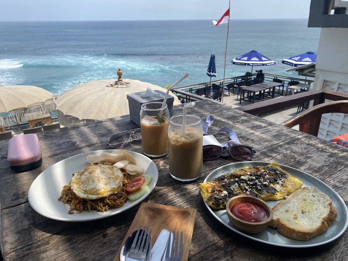 Top Warung Uluwatu sits perched along the rugged coastline of Jl. Pantai Suluban, making it a favored cafe spot for those seeking laid-back vibes paired with striking ocean views. This is the kind of place where mornings start with sunlight spilling over the water, perfect for breakfast and a coffee while watching surfers ride the waves below.
